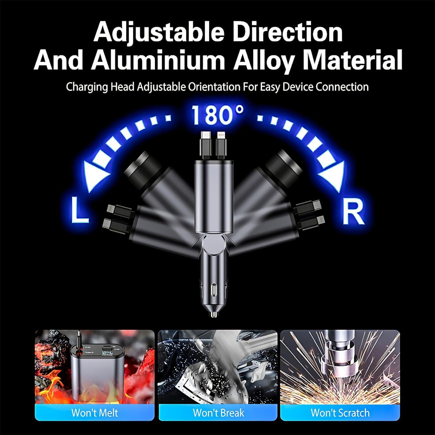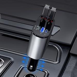 Janvitha 4-in-1 120W Retractable Fast Car Charger with Lightening and C to C