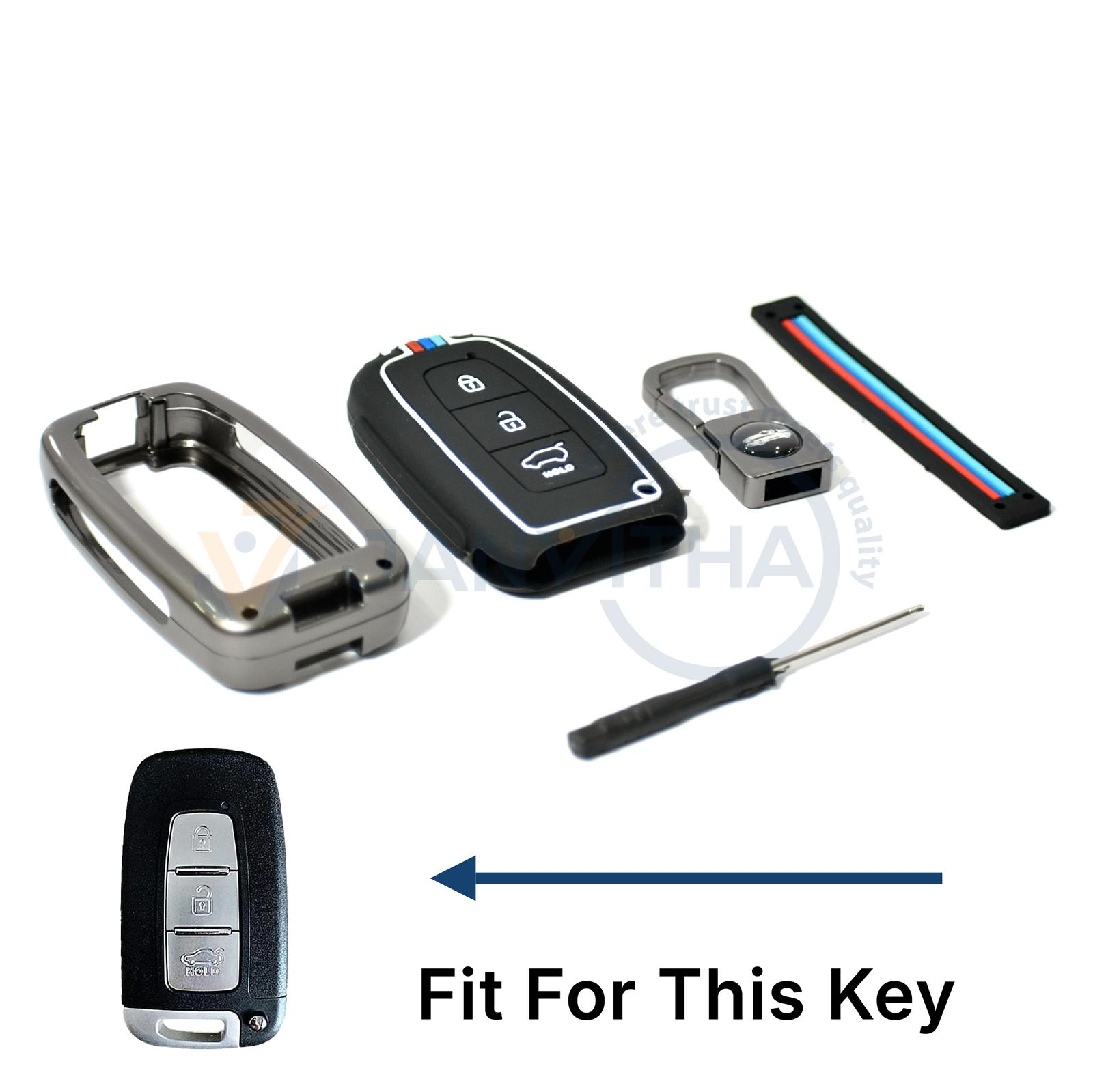 Hyundai Smart Key Cover with Keychain – Fits Creta, i20, Verna, Venue & More (3/4 Button Keys)