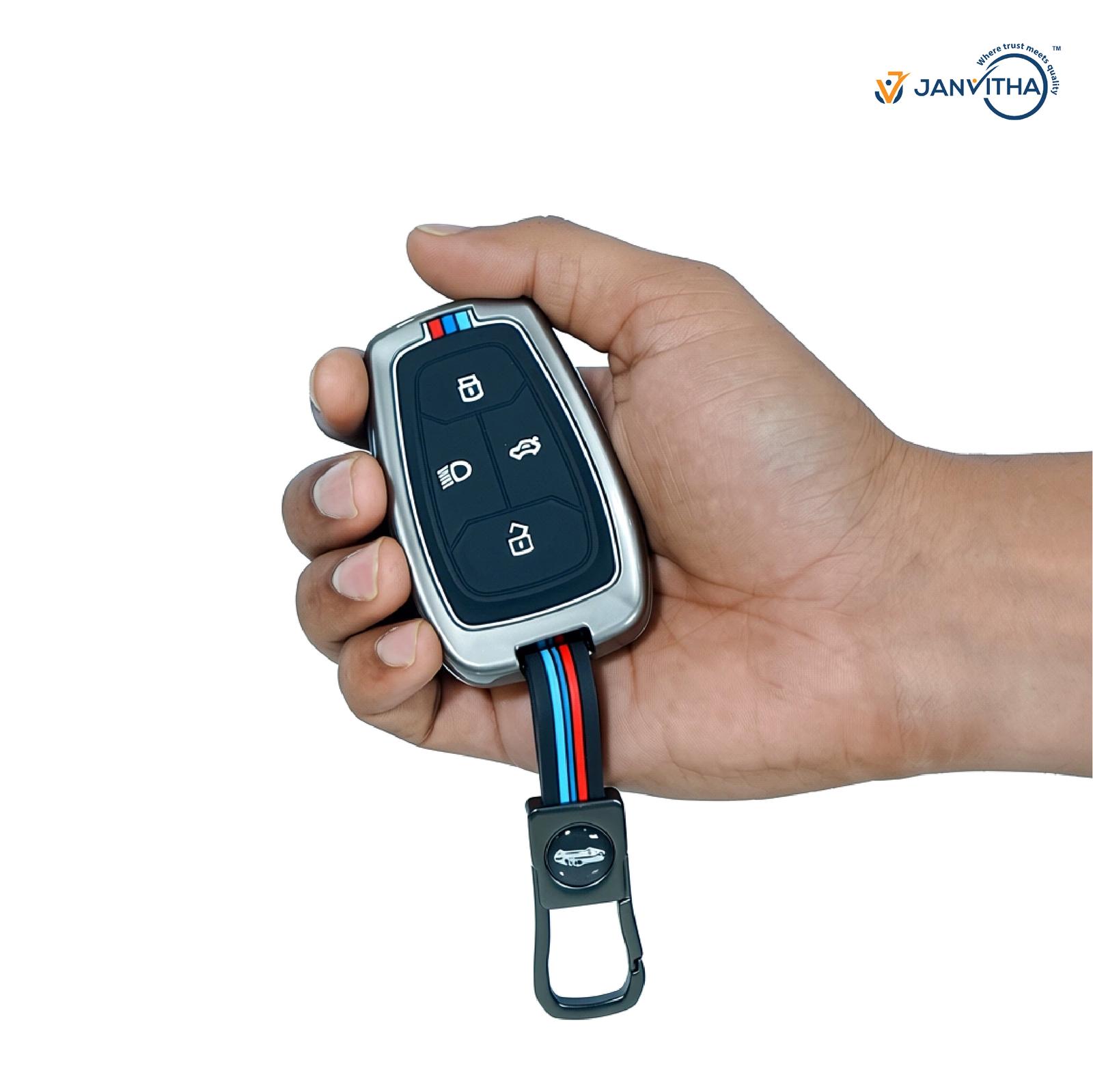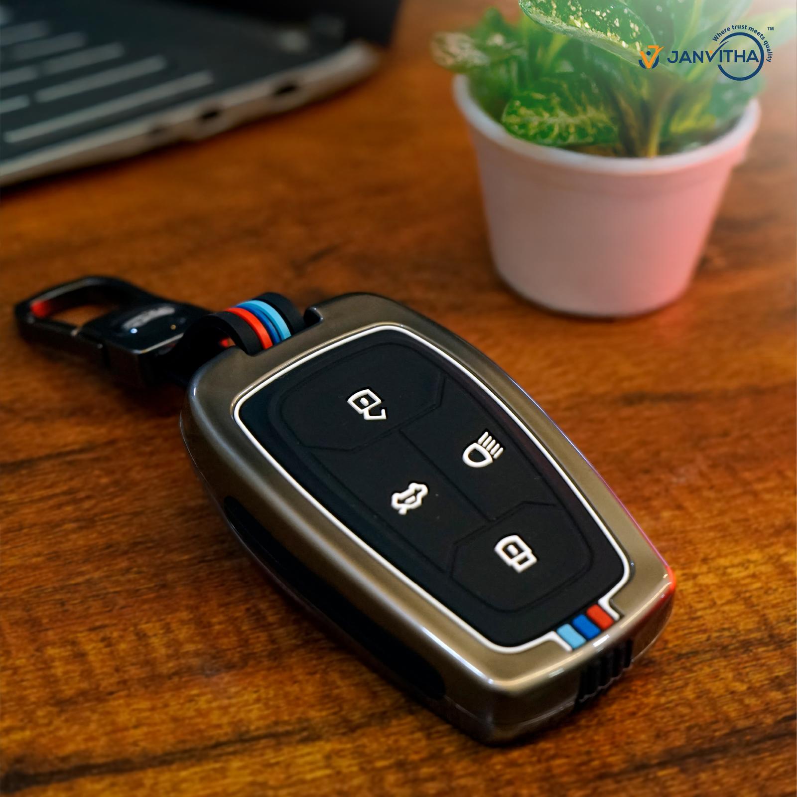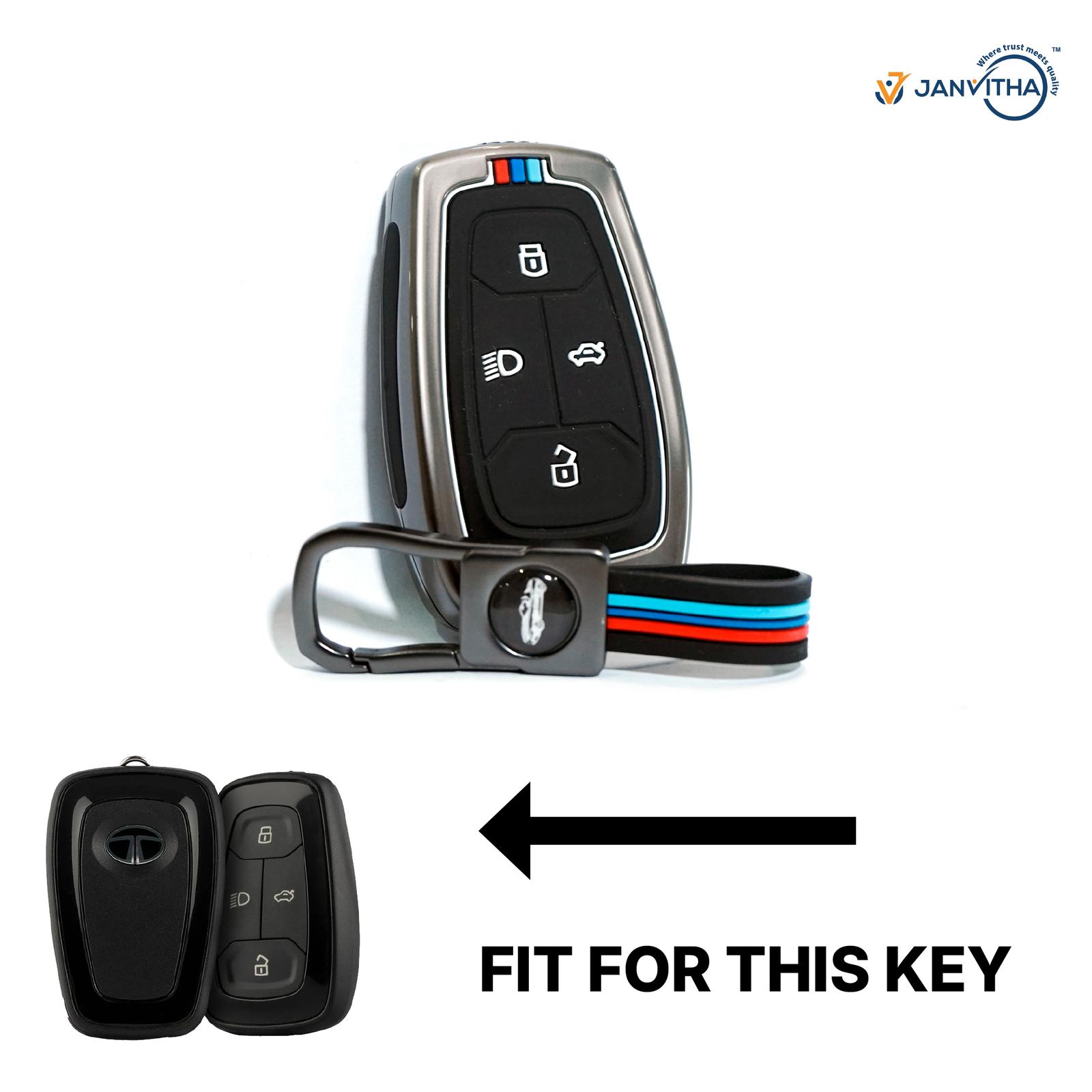 Metal & Silicone Key Cover for Tata Nexon, Harrier, Safari, Altroz, Tigor, Punch, Tiago EV – 4-Button Key cases – Scratch-Resistant, Glow-in-Dark – Black Car Accessory Metal & Silicone Key Cover for Tata Nexon, Harrier, Safari, Altroz, Tigor, Punch, Tiago EV – 4-Button Key cases – Scratch-Resistant, Glow-in-Dark – Black Car Accessory