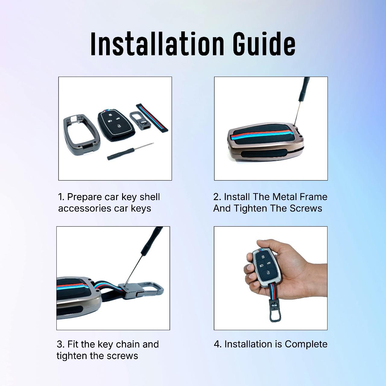 Metal & Silicone Key Cover for Hyundai cars i10, i20, Verna, Creta and Etc